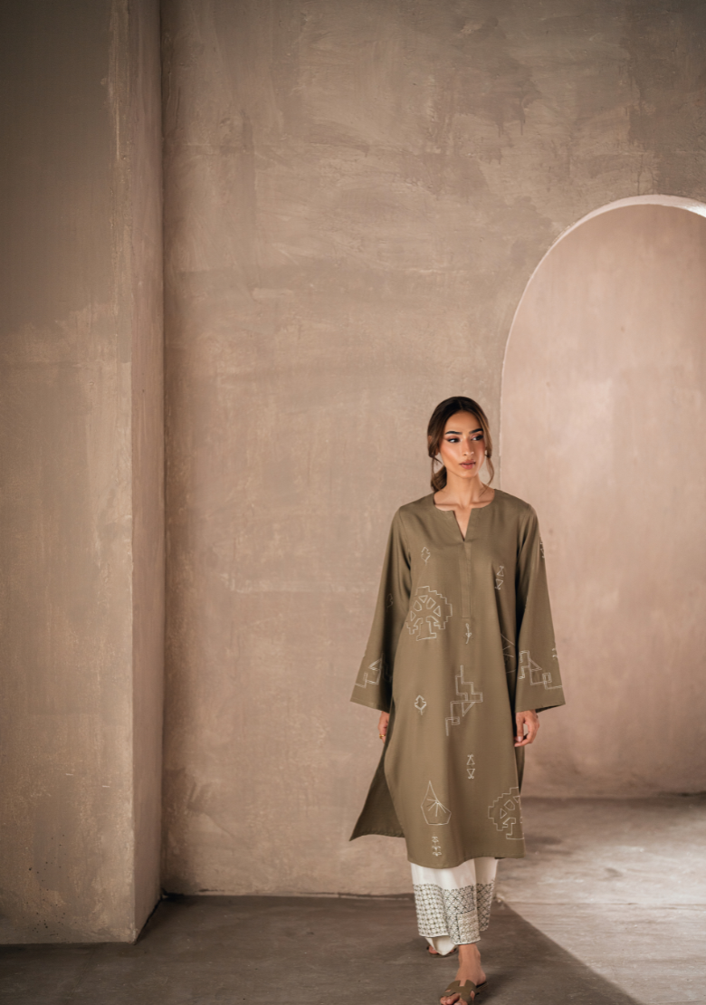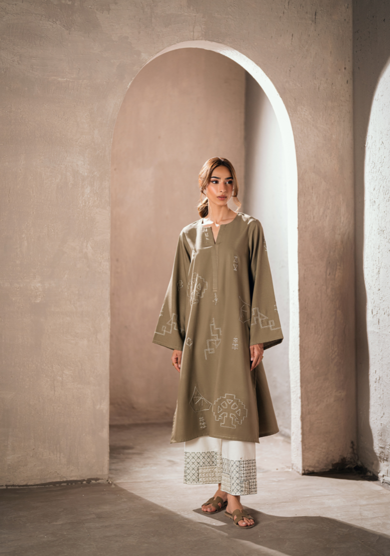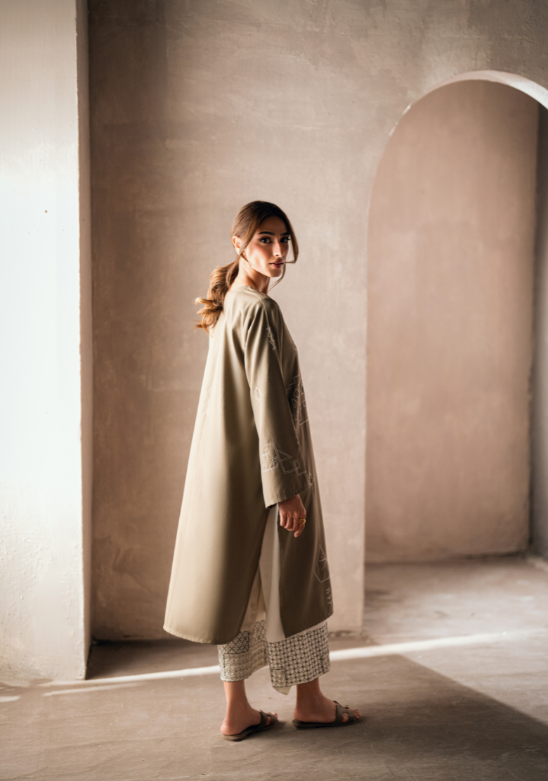 Embroidered butter-cream set Includes an embroidered shirt and shalwar Includes an attached lining Fabric - Pure premium cotton with a subtle sheen produced in-house Silk dupatta is sold separately *The model is wearing a size XS *The colour of the article might vary...