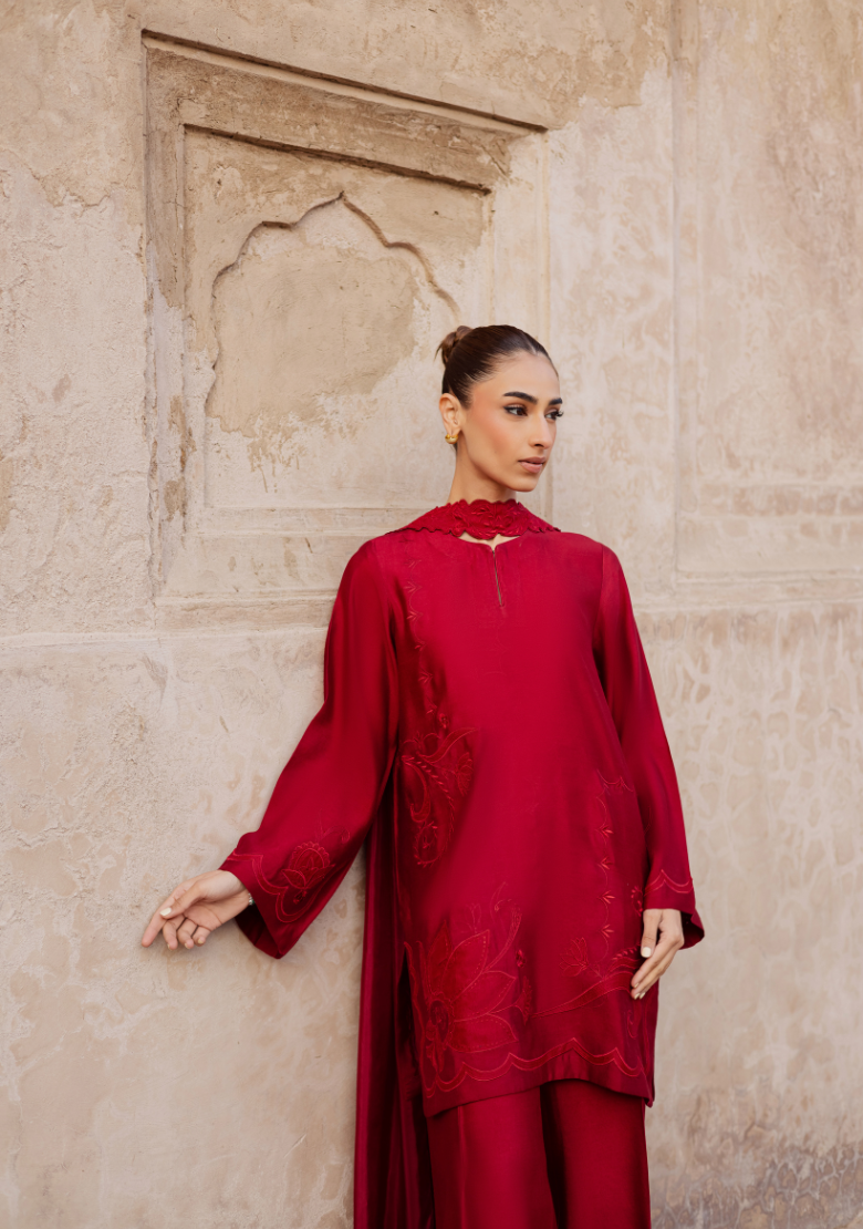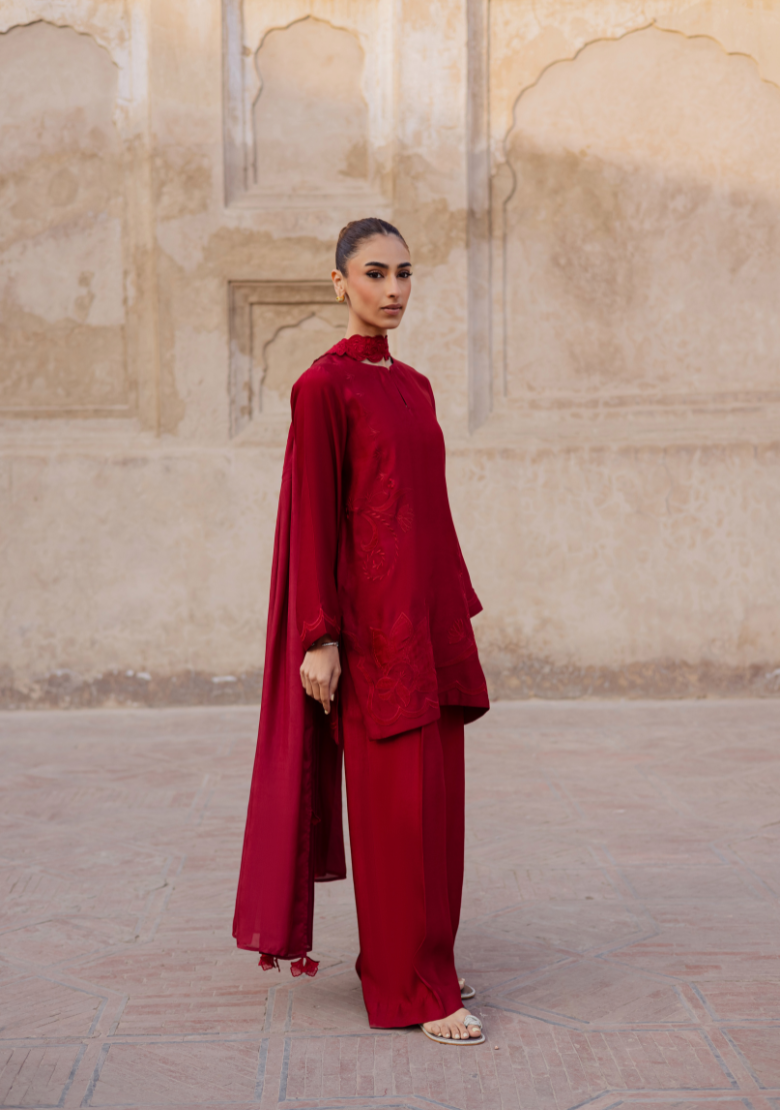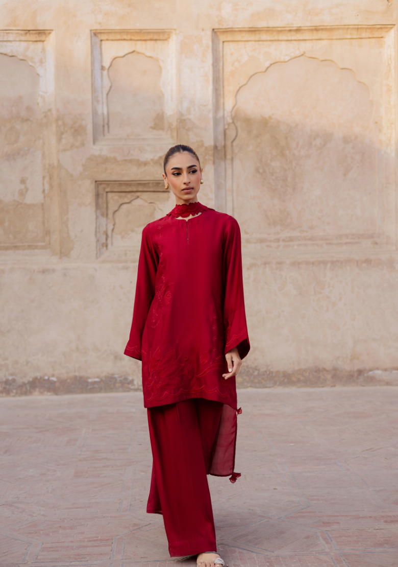 Embroidered red set