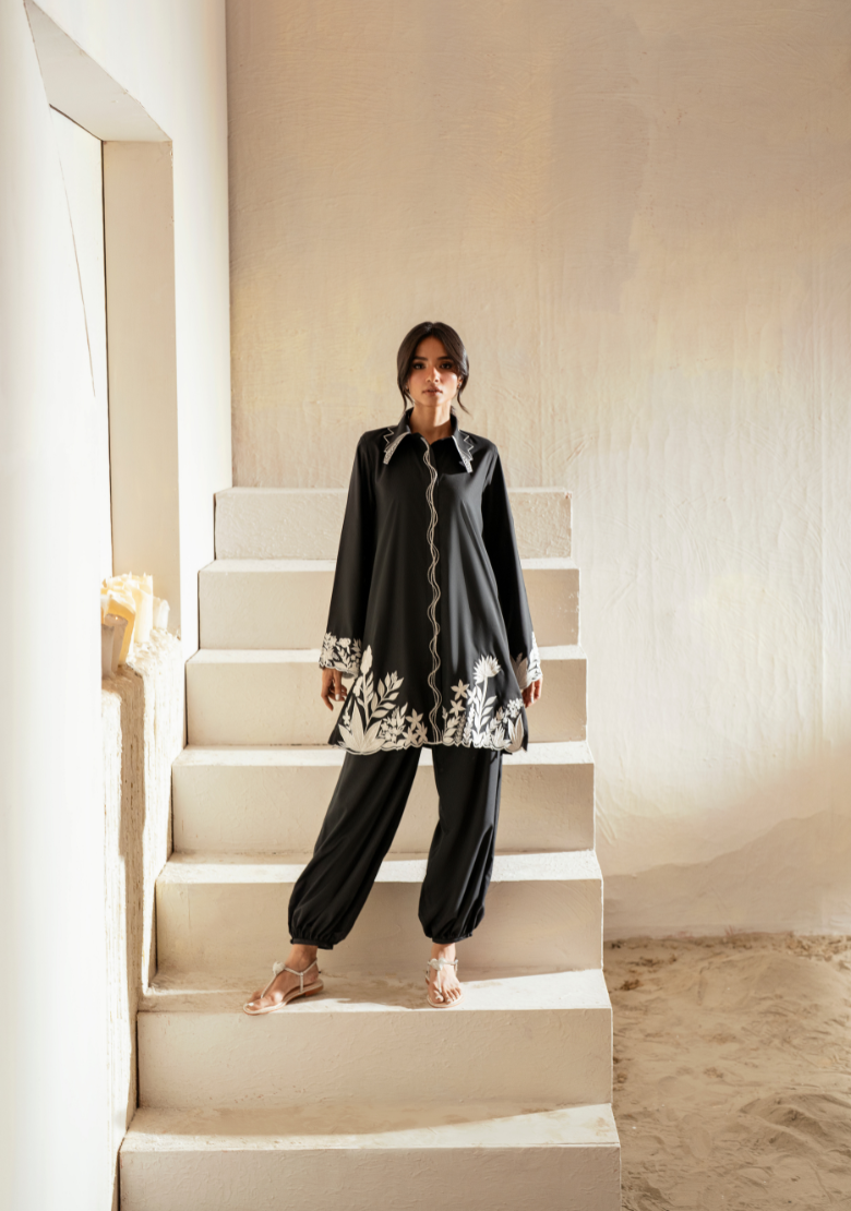 Embroidered butter-cream set Includes an embroidered shirt and shalwar Includes an attached lining Fabric - Pure premium cotton with a subtle sheen produced in-house Silk dupatta is sold separately *The model is wearing a size XS *The colour of the article might vary...