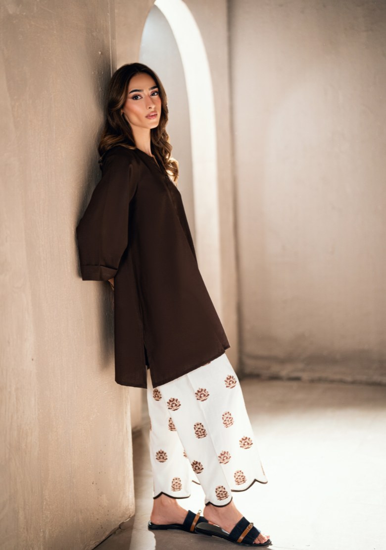 Embroidered butter-cream set Includes an embroidered shirt and shalwar Includes an attached lining Fabric - Pure premium cotton with a subtle sheen produced in-house Silk dupatta is sold separately *The model is wearing a size XS *The colour of the article might vary...