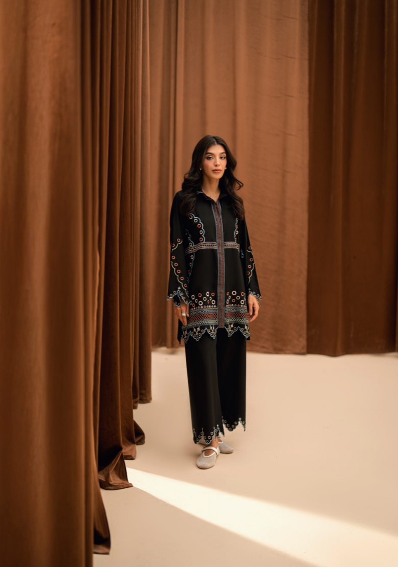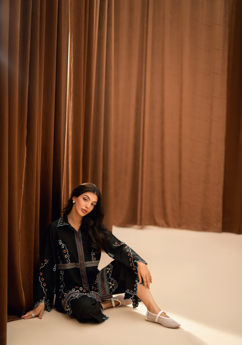 Embroidered butter-cream set Includes an embroidered shirt and shalwar Includes an attached lining Fabric - Pure premium cotton with a subtle sheen produced in-house Silk dupatta is sold separately *The model is wearing a size XS *The colour of the article might vary...