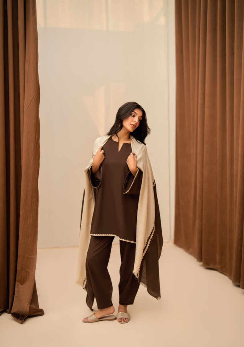 Embroidered butter-cream set Includes an embroidered shirt and shalwar Includes an attached lining Fabric - Pure premium cotton with a subtle sheen produced in-house Silk dupatta is sold separately *The model is wearing a size XS *The colour of the article might vary...